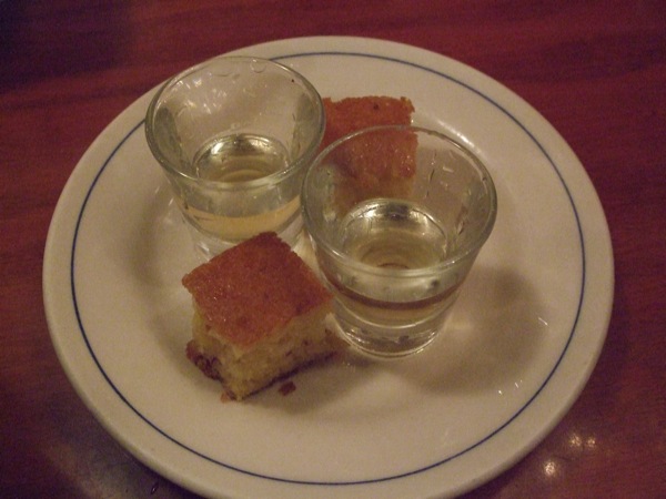 デザートはお店のサービス。Bougatsa と思われるお菓子も自家製で美味しいし、デザートワインも美味しい。